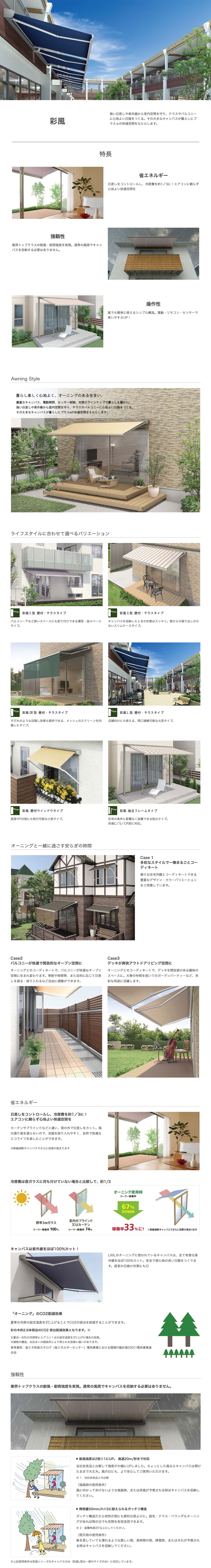 LIXIL オーニング 彩風 LIXIL オーニング 綾風 手動幅1820 出幅1250 の場合お問い合わせください 取付工事費別途 1日 強い日差しや紫外線から室内空間を守り、テラスやバルコニーに心地よい日陰をつくる。その大きなキャンバスが暮らしにプラスαの快適空間をもたらします。 特徴・機能 LIXIL オーニング 綾風 手動幅1820 出幅1250 の場合お問い合わせください 取付工事費別途 1日 強い日差しや紫外線から室内空間を守り、テラスやバルコニーに心地よい日陰をつくる。その大きなキャンバスが暮らしにプラスαの快適空間をもたらします。 古くなった設備を新しくしたい
